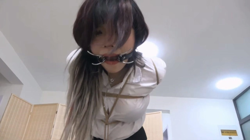 新模特曼妮,身材是真的顶,前凸后翘,这次穿上了OL制服绳子一勒更加圆润了。这次把她欧式绑起来强制弯腰,再带上大号的口环流口水。