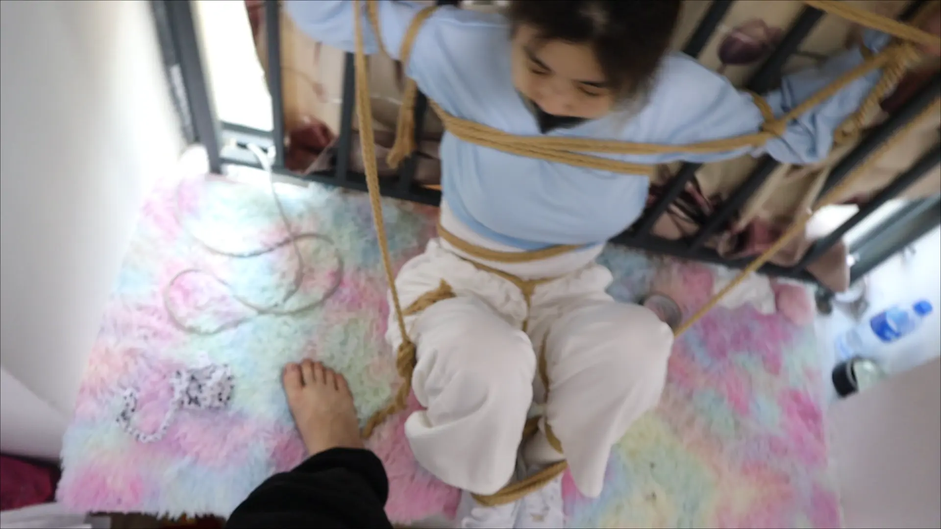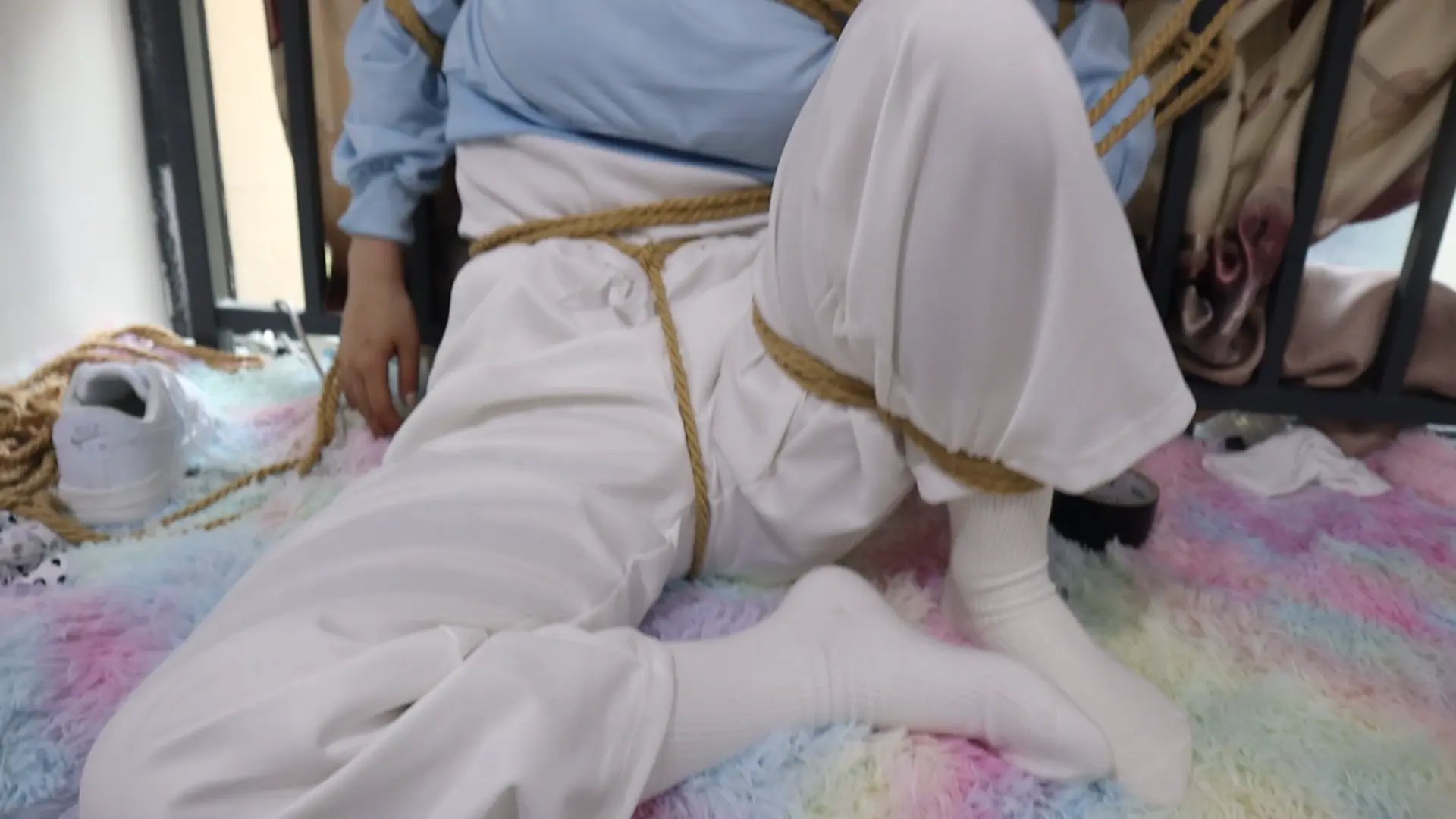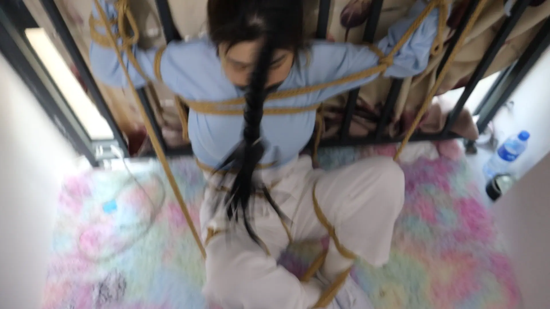 纯干货剪掉多余捆绑和解绑动作 刚烈女孩H好久不见,一见面就死死的绑在栏杆上,堵上嘴巴,