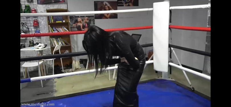 黑皮衣女和反派吵架后打斗,被各种蹂躏,摆出各种羞耻姿势,最终倒地失去意识。