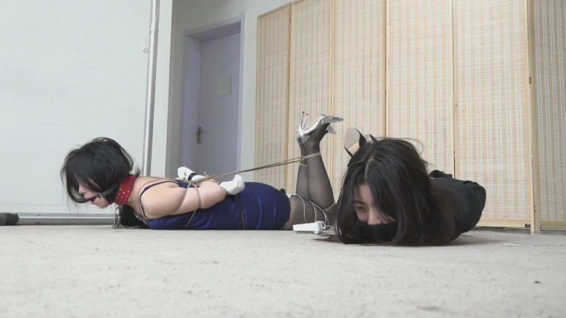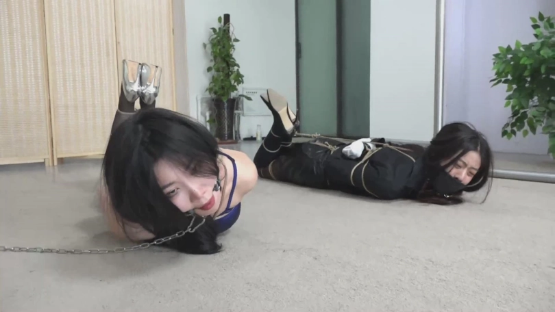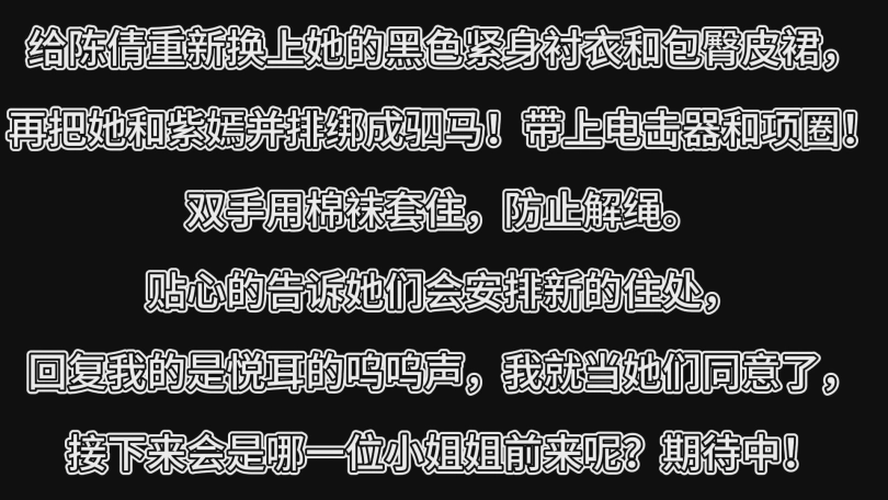 再把她和紫嫣并排绑成驷马!带上电击器和项圈!