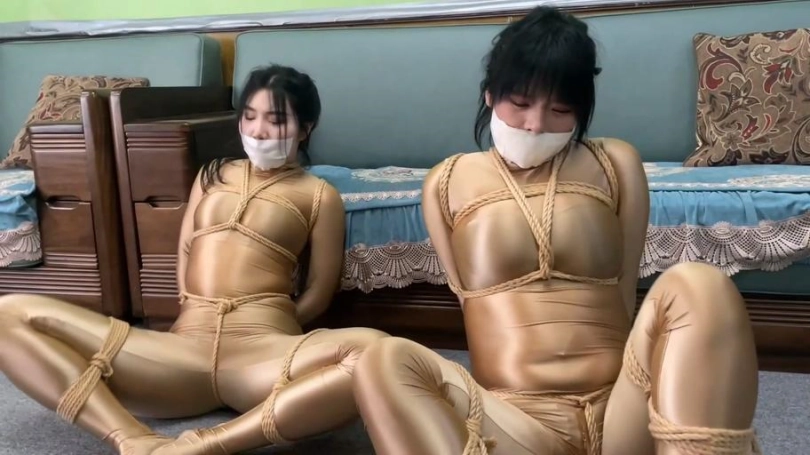 没法用手的她们只能用脚试着解缚,但这紧身衣的脚部太滑,试了几次根本没法用,她们想脱下紧身衣,研究了一下紧身衣开口在后背是一体的,根本没法脱下,她们互相摩擦双脚想弄破紧身衣的脚部但衣服意外的结实根本弄不破。