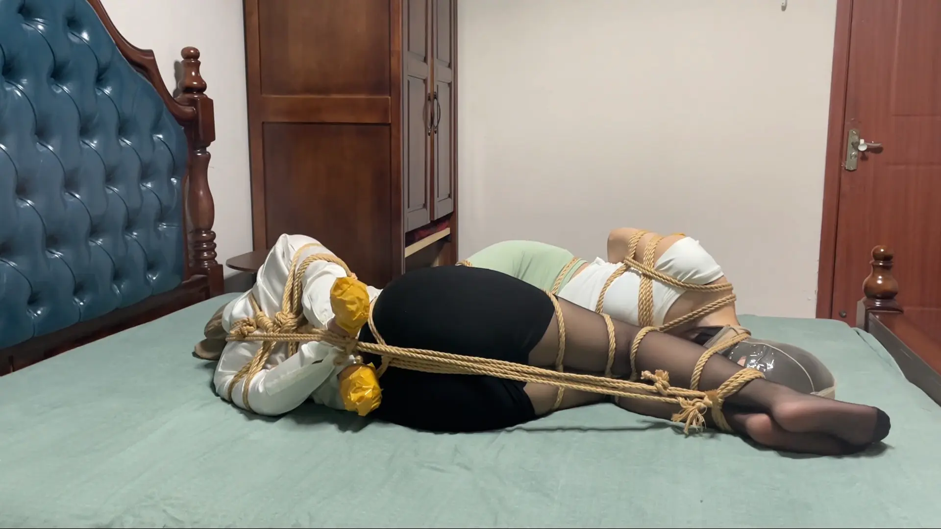 张先生看着眼前的捆绑艺术品深感满意,“仁慈”的他决定让捆绑放置柳洋和李然,让这两位侦探丽人好好感受对方身上的气味。