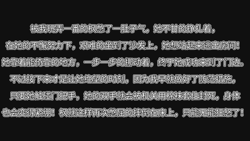 在她的不懈努力下,艰难的坐到了沙发上,她想站起来逃出房间!