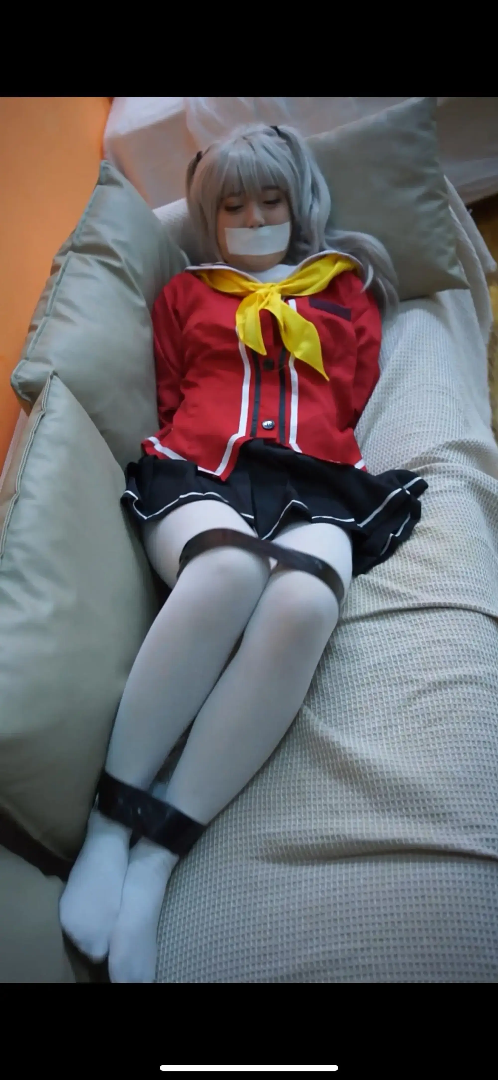 友利奈绪在房间里换上自己新买的白裤袜,本想联系朋友却被坏人入室捆绑,胶带封嘴,侥幸逃脱却又被坏人守株待兔继续折磨,她能否逃出绝境