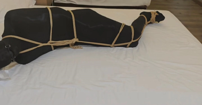 剧情三:丝袜全包捆绑塞上小玩具,带上口球,一刻也不让他消停