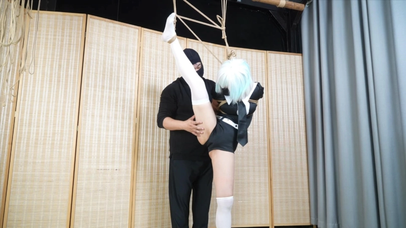 宝石之国c服:单脚吊缚+马具口球的V字驷马
