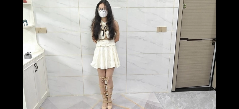 02年新模特首次试拍,韩系御姐风,被绑法绑架后在线挣扎,首先挣扎成功,后面变成驷马后怎么动都解不开,后面这个模特可能要发展成女绳师了。