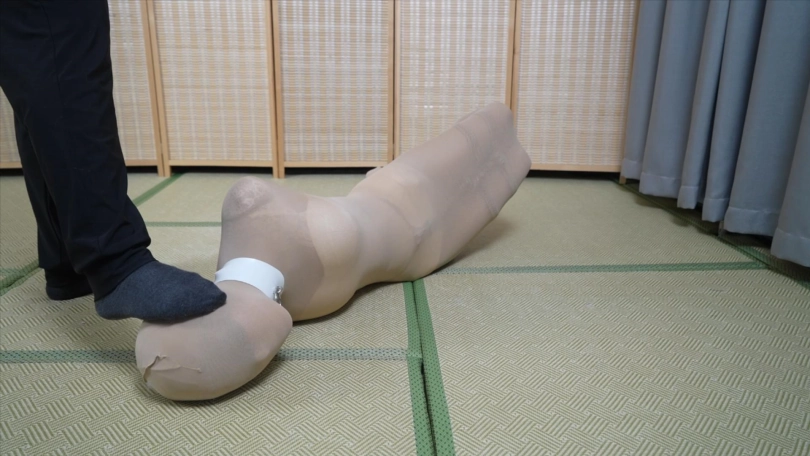 并肘直臂绑好以后,加上股绳和大腿小腿的绳子,脚掌和鞋子也绑在一起
