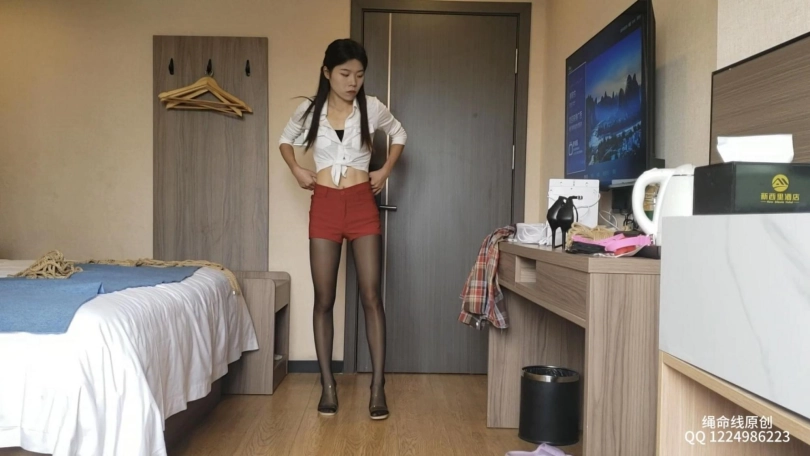 安琪男朋友走了之后,叫她换了套服装,穿上黑丝绑了个日式M腿,看起来还是挺诱惑的,绳师电话来了,只能让她自己在房间里挣扎脱缚,最终绳师回来了,绳子还有一点点没解开,哈哈哈!