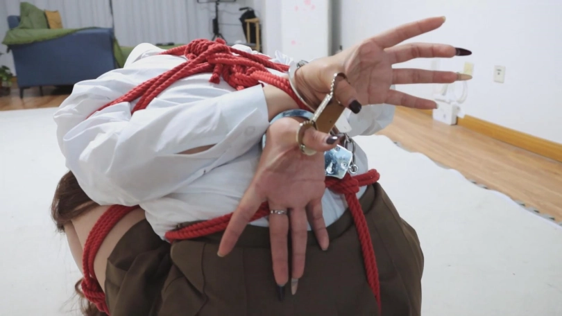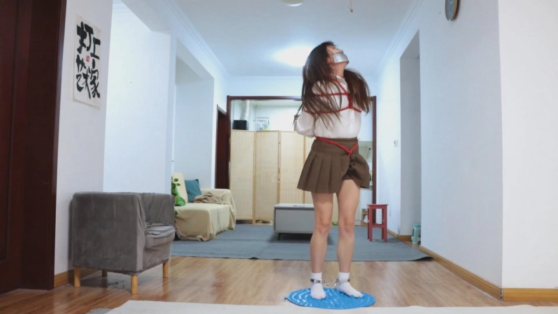 【亮点】新模小于(这是采访时她给自己取得艺名,我不太喜欢用数字称呼模特)文艺风女大雅倩登场+被人发现惨死家中,不请自来的摩尔侦探进行现场勘察+以指压板和镣铐作为切入点,模拟入室抢劫后被歹人逼着做任务+纯白内裤脱掉堵嘴,镣铐加身后在指压板上做游戏(将手铐钥匙吊高,每次做五个蹲起才能跳起一次,每次失败都会被抽打脚底)+最终失败,被折腿紧缚被迫放置在指压板上(模特直言指压板贼痛)。