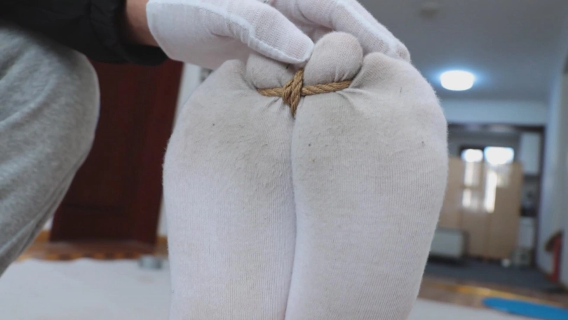 摩尔先生来到警戒线之前,戴好白手套,弯腰越过警戒线进入现场,首先勘验现场的shi体,摩尔先生用手首先细致观察了封嘴方式,感受僵硬程度,再拉拽连接手脚的绳子,经过仔细的勘察发现了更多的细节,例如:摘掉眼罩,按压shi体嘴部胶带发现嘴里塞着柔软的布类物品,撩开耳边的头发发现耳部塞着耳塞,按压套着袜子的手感受到里面被胶带缠绕,脱掉手上的袜子后仔细观察被胶带缠绕的手,观察被绑住的大脚趾等。