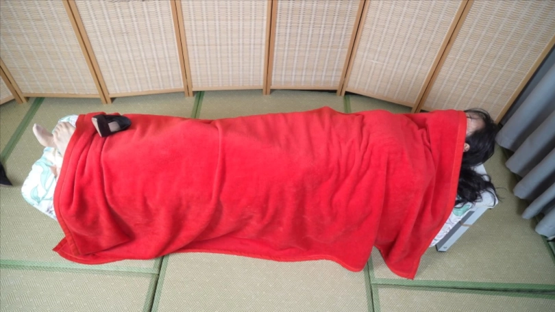 胶带封嘴和眼睛,最后把棉被包住全身