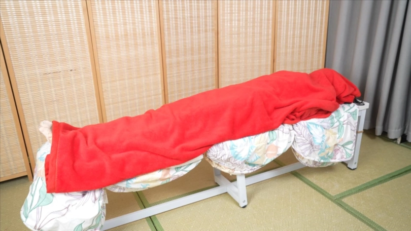 上身日式捆绑,双脚,膝盖,腰都被绑在长椅上