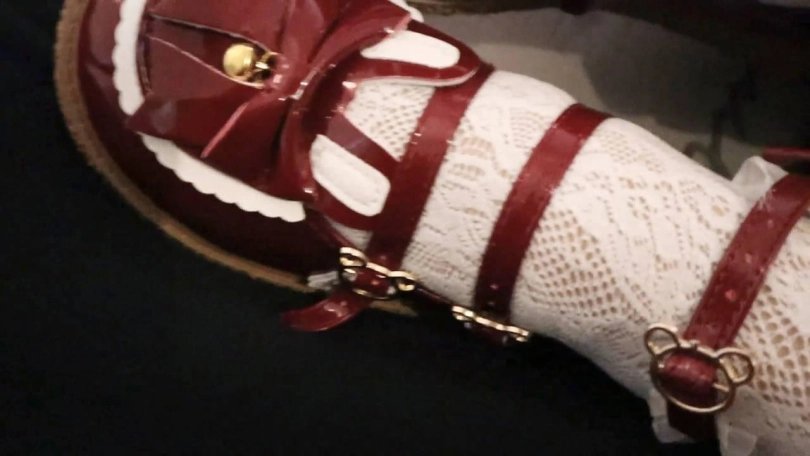 慢慢的慢慢脱下红色的小lo鞋露出小lo袜子