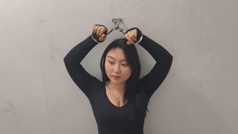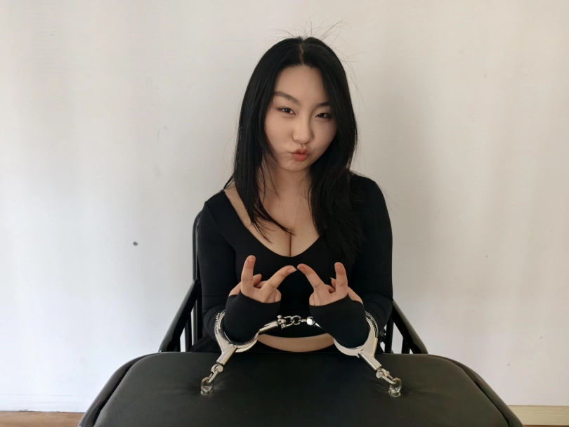 › 【忘忧社】新模特想体验手铐脚镣,工作人员为他戴上手铐,并让他感受其感觉。接着,模特被要求试戴脚铐,但因工作人员操作不当,导致脚铐反了且太紧。模特感到胳膊酸了并表示不好玩,想离开,但是在进入一个