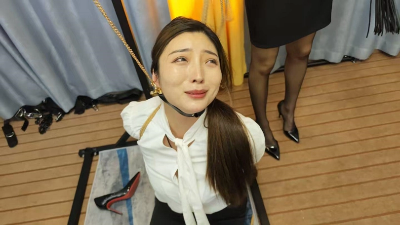 晓倩是一家公司老板,喜欢调教女M,这一天找借口把佳佳训斥,逼迫佳佳在办公室直接下跪,[X_X],高跟鞋踩踏,最后带上项圈,让佳佳直接在瓷砖地板上爬行,疼的佳佳叫声连连,带到调教室,把佳佳栓到架子上,五花大绑,项圈勒的佳佳喘不过气来,泪流满面,最后一直哀求放过,女老板那肯轻易放过,强迫佳佳跪好头按地,皮鞭抽打,[X_X],打胸,经过一系列的调教,最终把佳佳成功的调教成一名小母狗,乖乖的跪在女老板面前,这次是晓倩和佳佳联合演出的女女调教大戏,非常精彩,大家喜欢的话接着拍续集,晓倩会穿一身黑色胶衣,尽显女王本色,佳佳穿一身红色胶衣秒变小母狗,听从晓倩深度调教。