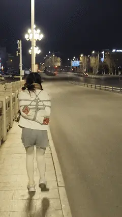 白丝热裤双马尾日式紧缚夜行,路灯下人行道悠然散步,中途被人看到几次。如果被路人看到一个被绑住上身的绳子玩偶会忍不住多看两眼吧~