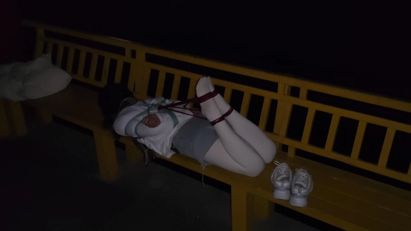 之后给露露在公园长椅绑了驷马缚,静静躺在那里也很无助