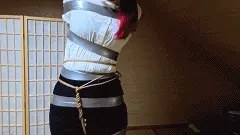 【渎竺】【川川】OL职业装,银色胶带密集缠绕柱缚 上
