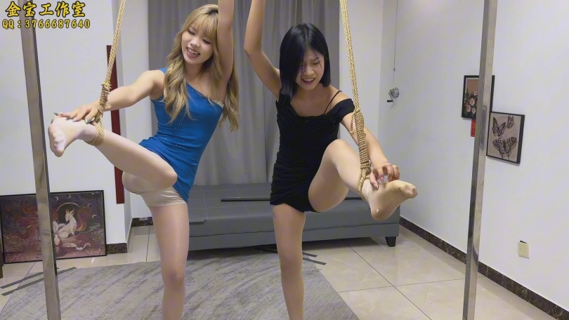 c说着便拿出了先前a的那瓶喷雾药剂,喷在了两人被吊着的脚上,并开始挠两人的脚心,两人被挠的笑个不停,脚却无法躲开。13.【以c作为第一视角拍摄】c觉得还没有尽兴,于是将那个喷雾药剂又喷在了两人的[X_X]。
