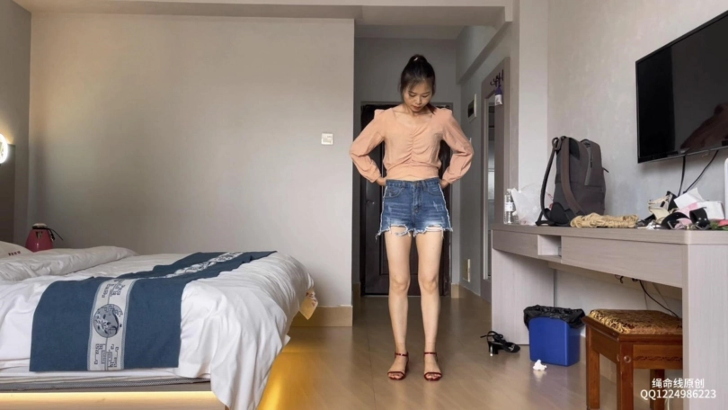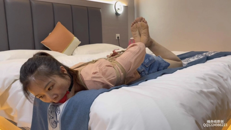 拍了几次的文文开始有点表现力了,这回就是个简单的日式驷马,叫她挣扎努力把绳子解开,她也是很卖命了,可惜把她绑得太紧怎么挣扎都挣脱不开,再加上脚趾上的扎带加固又痛又没有太多的活动范围,更难挣脱了,哈哈!