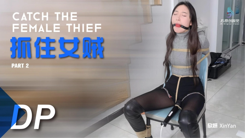 男人觉得还不够,给女贼换了一个震动力更强的黑色棒棒,继续刺激着女贼。