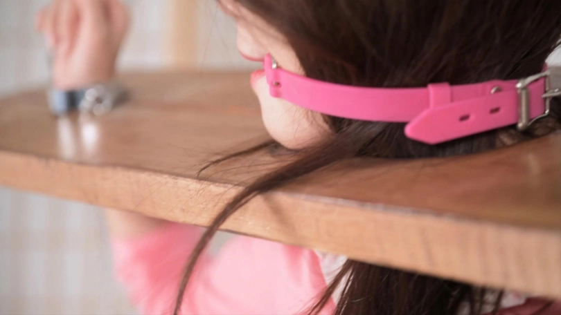 这个红色的足球宝贝的衣服本来是上衣加短裤,言妍自己搭配了一件学生气质的百褶裙,她这样一搭配,穿在她身上毫无违和感,加上白棉袜和加绒的运动鞋,这气质立马就出来了,把木枷吊起,腿上用了大腿铐,脚铐也用两根铁链限定了活动范围,言妍只能很小范围活动身体,这样放置简直太养眼了,经过TK、刺轮和电击器的攻击,她的呻吟声也激发出来了,对,就是我们喜欢的那个调调,又是声画俱美的片子!