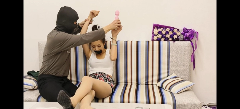 【睡美脚】【居家少妇诺米的堕落】鼓掌ZDB胶带封嘴反复捂晕翻白眼TK肉丝捆绑手铐束缚