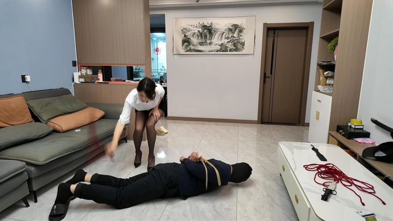 晓琴正在家里休息,听到客厅有动静,出来一看,发现竟然偷偷溜进一名小偷,于是一场斗小偷的故事就开始了,各种审问,鞭打,踩踏轮番上演