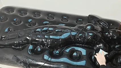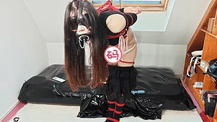 被驷马吊缚在环上的露露根本无法逃脱被榨的命运,强行扭动身体挣扎,头部强制扬起,口塞眼罩剥夺感官,呼吸和发声双双困难。