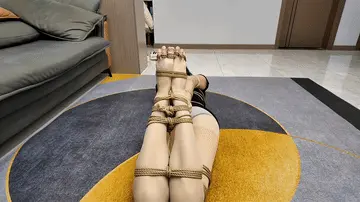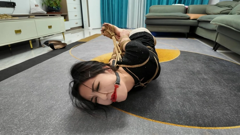 晓倩被龟甲捆绑,直臂驷马放置,十个脚趾也被紧紧捆绑,这个姿势太难受了,嘴也被口球堵着.