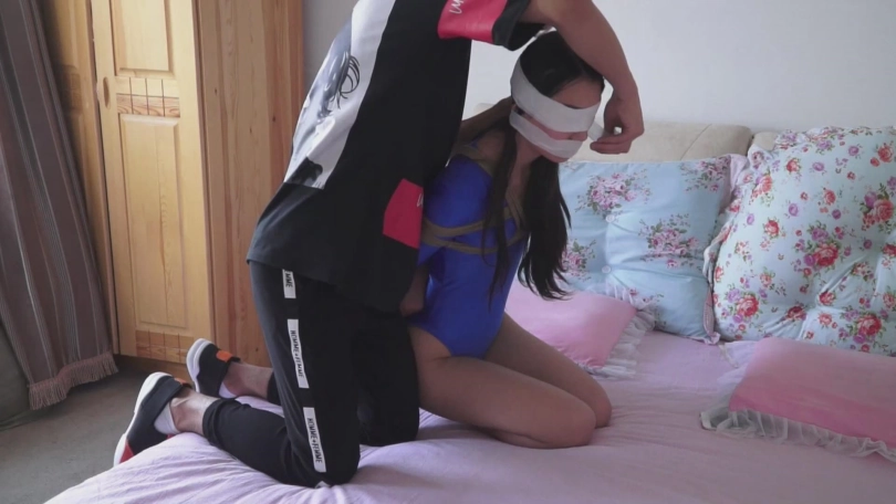 形体捆绑挣扎剧情片,林艺非常卖力的表演,把被捆绑的内心戏份演绎的很到位。