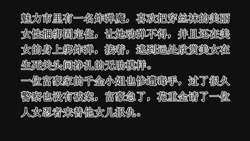 一位富豪家的千金小姐也惨遭毒手,过了很久警察也没有破案,富豪急了,花重金请了一位人女忍者来替他女