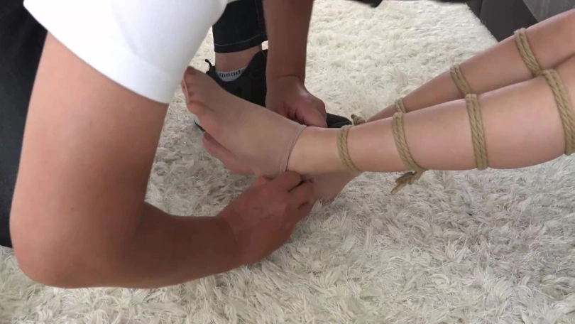 美女过生日准备在家庆祝生日,没想到遭遇入室抢劫,劫匪将美女严厉捆绑起来,用美女家里找到没洗的一条原文红色情趣内裤塞入美女口中,美女痛苦地挣扎着,劫匪又脱下美女脚上穿的高跟鞋和一双肉色短丝袜,继续把肉色短丝袜塞入美女口中,再用黑色胶带缠绕封住。