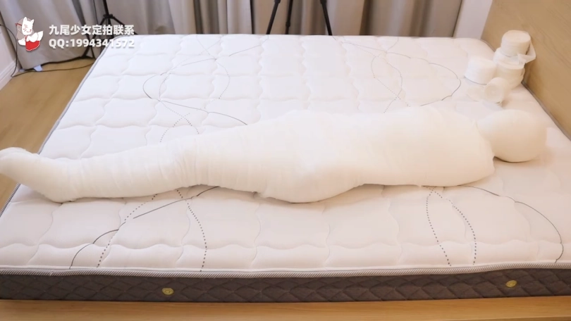九尾妹子绷带木乃伊多层全包体验升级,8大卷绷带(长度40米*8)多层缠绕包裹,中间加上大块纱布包裹,木乃伊经历实录,