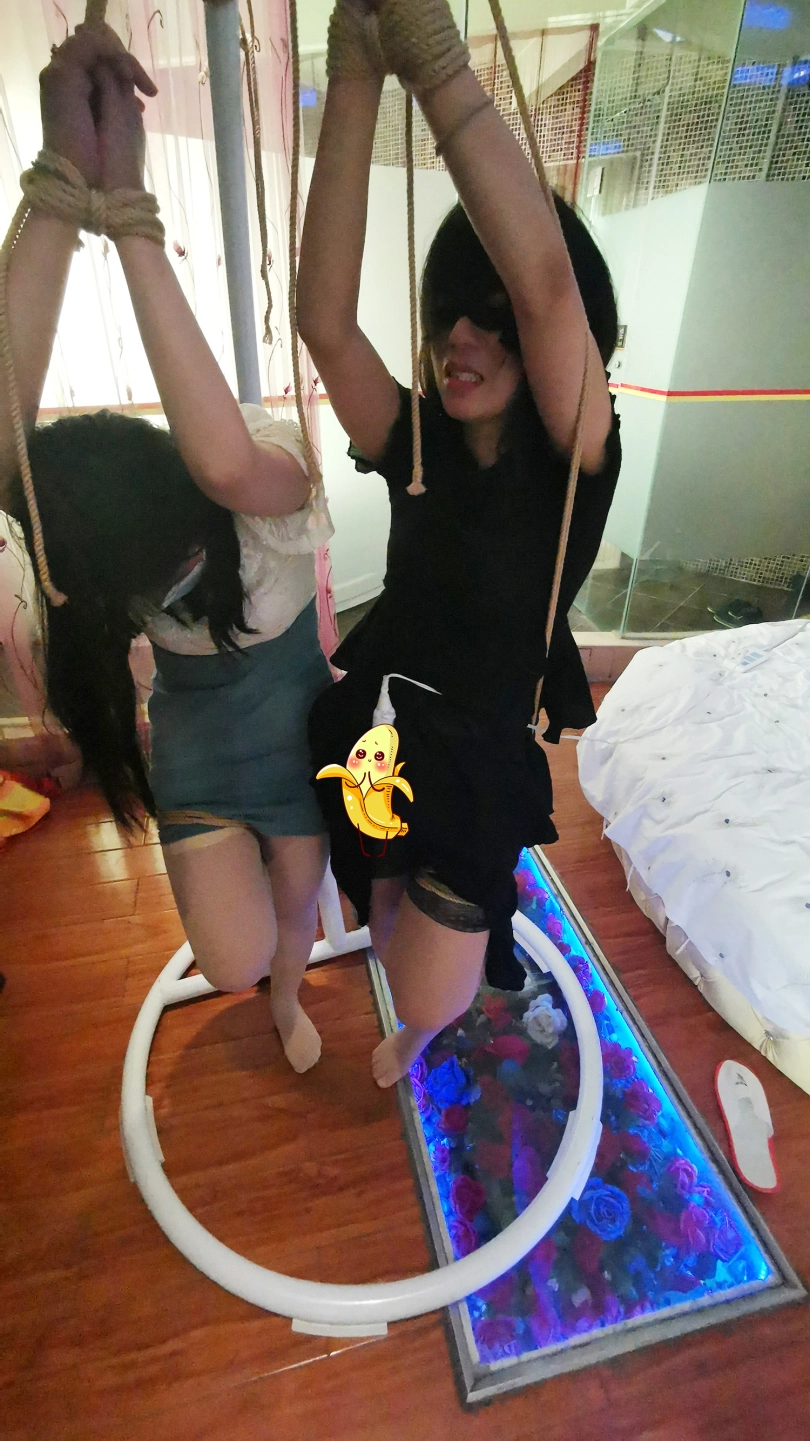 【JS】琳洛-凌熙 双女单腿吊缚 互相颈部亲吻挑逗 快乐棒刺激