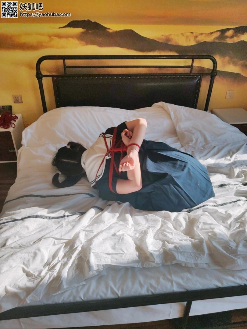 这次可爱的jk少女穿上了性感的黑丝薄裤袜,被我绑了一个拷问用的海老缚。海老缚脖子和脚腕的距离极短,几乎贴在了一起,让少女腰部承受巨大的压力和痛苦,动弹不得。少女高挑的身体如今却被压缩成小小的一坨,平日自豪的身高也被压缩的像箱子一样,只能屈辱的盘起腿低下小脑袋,动弹不得。因为绑的太紧所以脖子都被勒出了紫色的绳痕。我要求少女,在这个痛苦的姿势下尽可能的移动挣扎,让大家能享受到紧缚姿势下少女扭动身体的可爱样子。本就十分痛苦的姿势下还要忍受我的挠脚心。海老缚状态下动弹不得,被挠痒反抗太小?那就小红藤条伺候!用小红超级用力的抽打少女的大腿根部、屁股和下面,每抽打一下少女的身体都猛的一抖,尤其是抽打下面时,白色的内内在薄裤袜的包裹下若隐若现、一览无余。我抽打的非常用力,才打了两三下妹子就哭出了声,妆都哭花了。但是我是不会心软的,更加用力的抽打妹子的屁股、大腿和下面。我自己尝试过,小红的每一下都疼的让人难以忍受,更何况是白嫩的妹子呢。