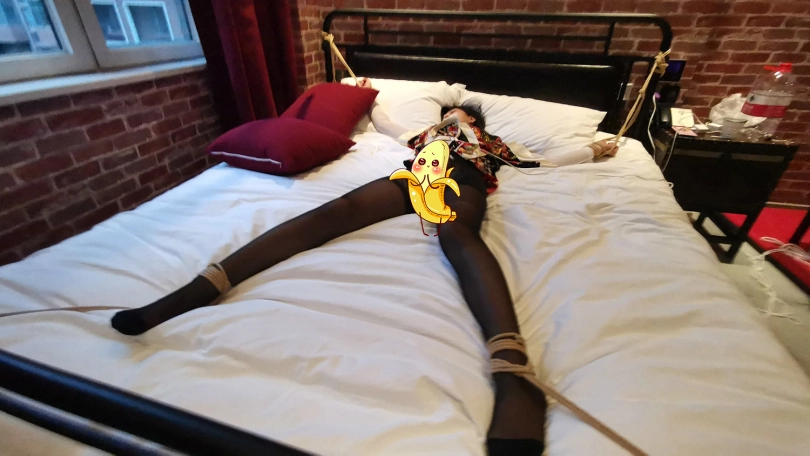【JS】DM 日系性感睡衣 床上大字捆绑 撕袜 封嘴 DD强震