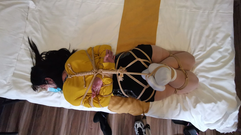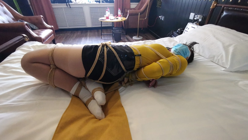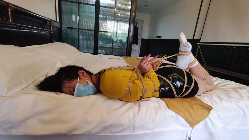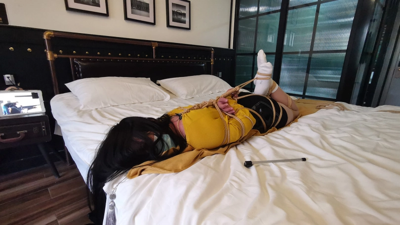 这次绑的还是比较紧的,绑好后出去了下,只剩琳洛一人在屋子里。被绑在床上的她尝试解开绳子,但每次挣扎都使她不断的呼吸急促,脸部都已经通红,能想到每次蠕动有多艰难。