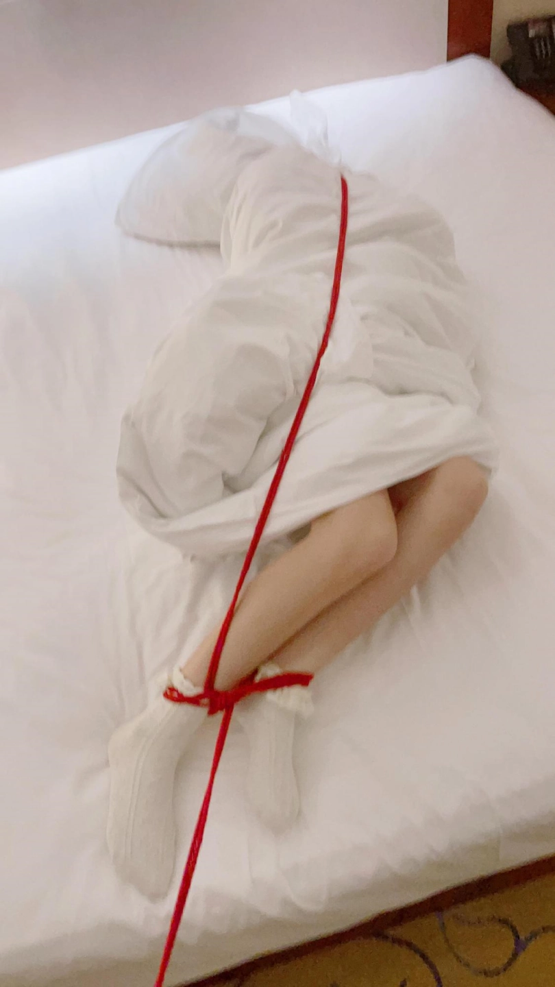 场景1:洛丽塔Lolita软妹风格的服饰+蕾丝花边短袜,用棉被完全包裹全包后用绳子缠绕,只有一双白袜小脚露出在棉被外,肆意挣扎。