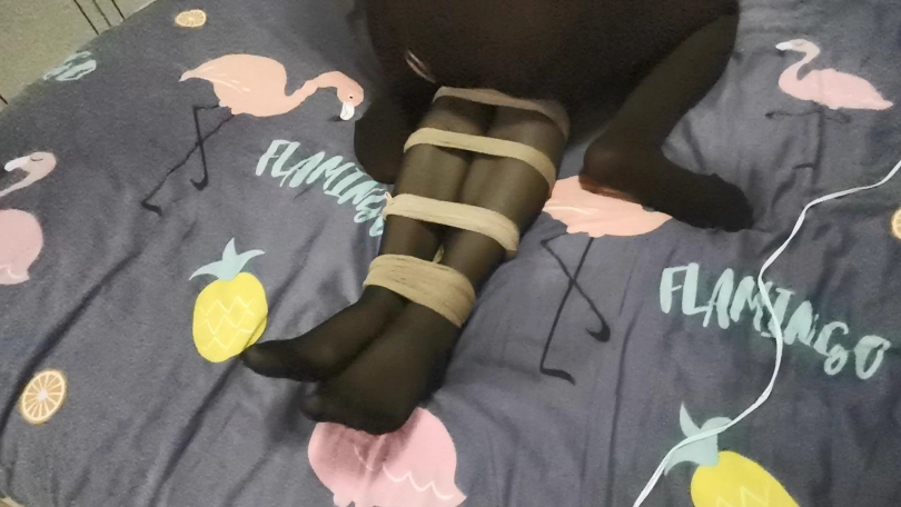 接下来轮到瑾萱体验捆绑,若灵用丝袜将瑾萱全身捆绑起来抚摸着她的身体,手不断的在瑾萱敏感部分游走。并亲吻着瑾萱。若灵用一条连裤袜套在瑾萱的头上。骑在瑾萱身上,拿出[不可描述]棒放在两人敏感部位中间,打开开关,两人一起体验着这种强烈的刺激感觉,她们的呻吟声也越来越大。。。