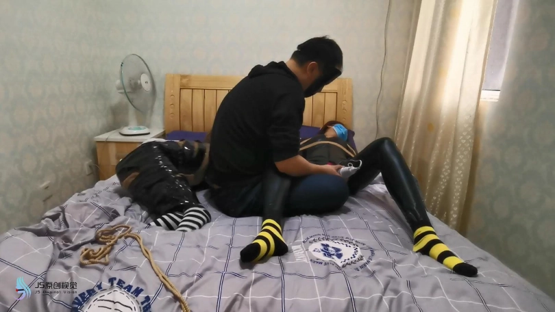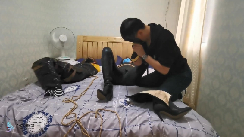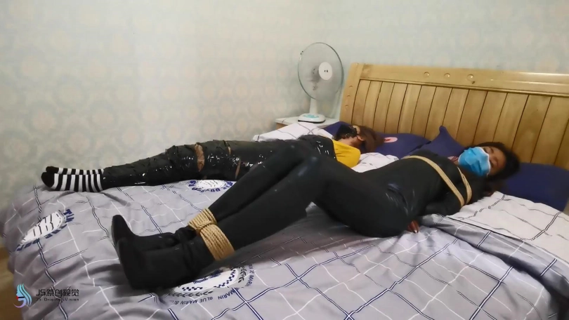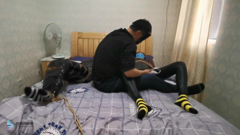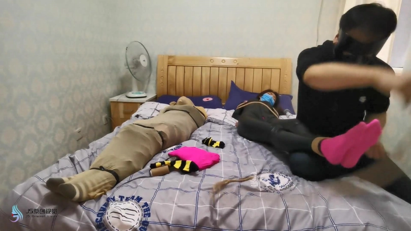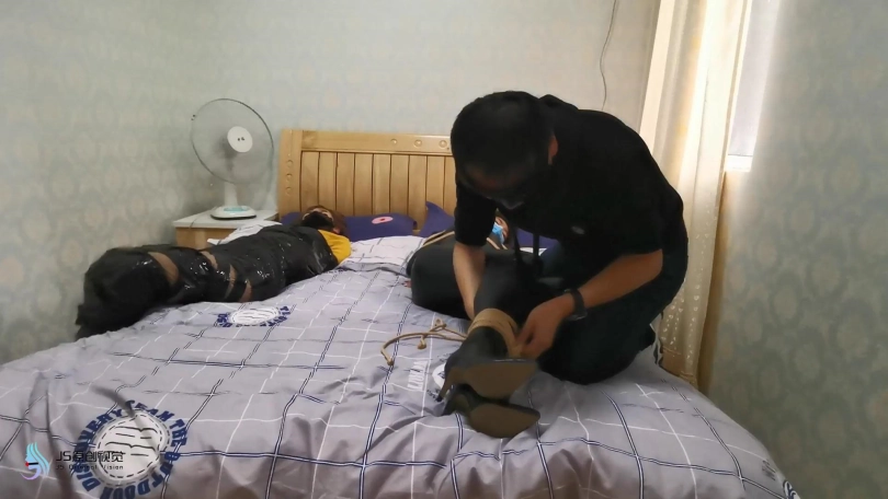 就在女贼准备离开时,埋伏许久的绑匪开始行动。用迷药从身后将女贼迷晕捆绑起来。用[不可描述]棒刺激玩弄着她们。脱掉女贼的靴子玩弄她的脚。脱去她脚上穿的棉袜堵嘴捂鼻。用丝袋将她们套住并用胶带缠绕固定。扛起她们带走贩卖。女贼怎么也没想到自己也成为了猎物。