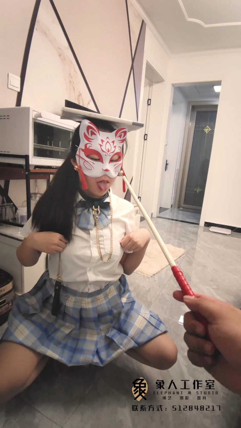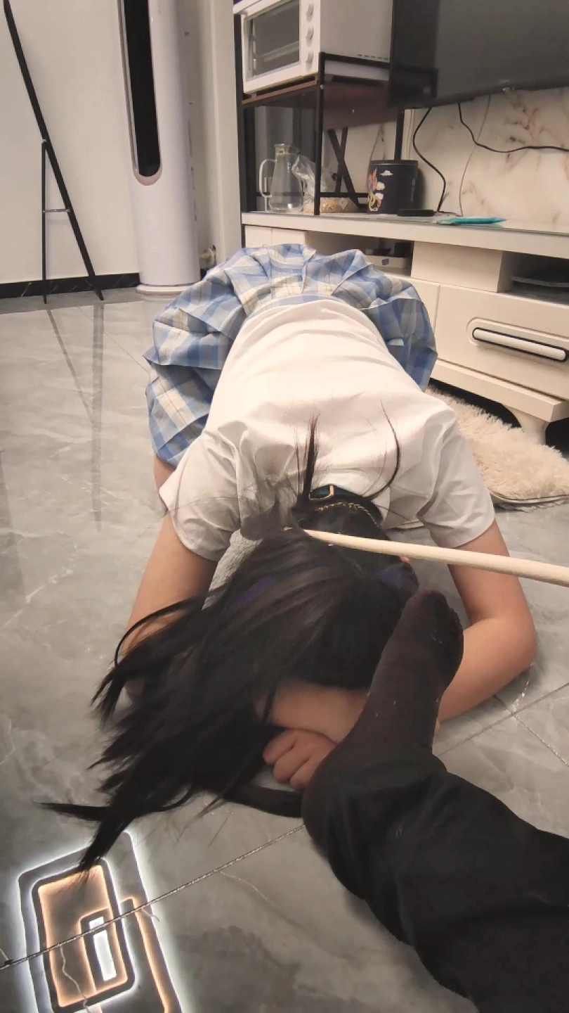 主人不是很满意,罚小鹿蹲五分钟,并且在小鹿的头上放一本书,不能掉下来。(最后还是掉了下来)罚小鹿藤条抽打屁股二十下,每打一次汪汪汪回应。