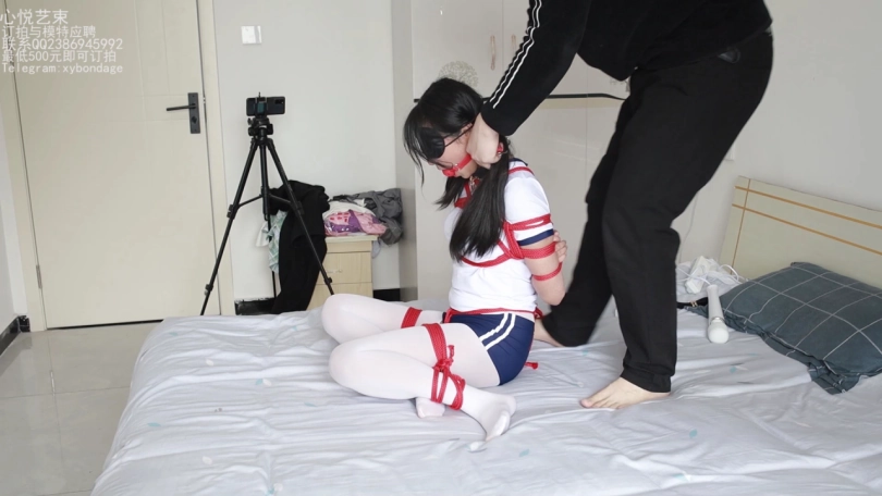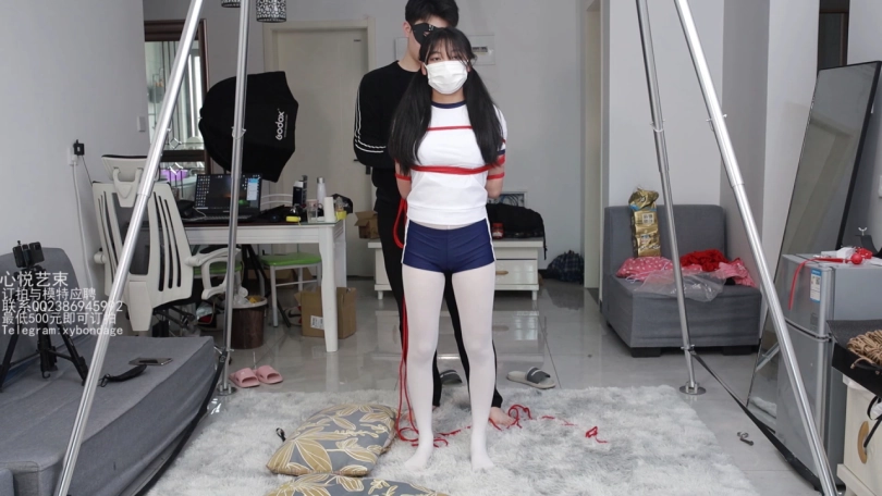 日式股绳M字,眼罩口球小项圈,齐活,最后在用棒棒刺激刺激,得劲。就是小姑娘太活泼了点,真的是巴拉巴拉个没完,口球都堵不上她的嘴,求网友支招整治整治她。