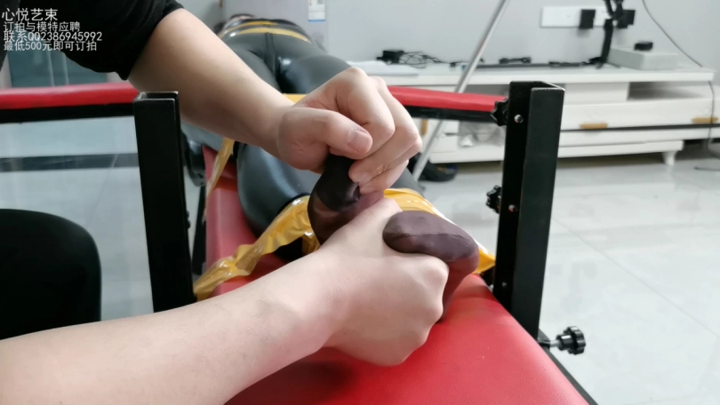 【心悦艺束】美女筱筱的黑色皮衣老虎凳胶带折磨TK