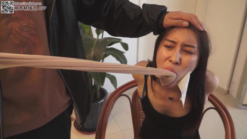 揭开封嘴的白色胶布后,又一点一点扯出了已经浸透口水的两双肉色连裤丝袜。