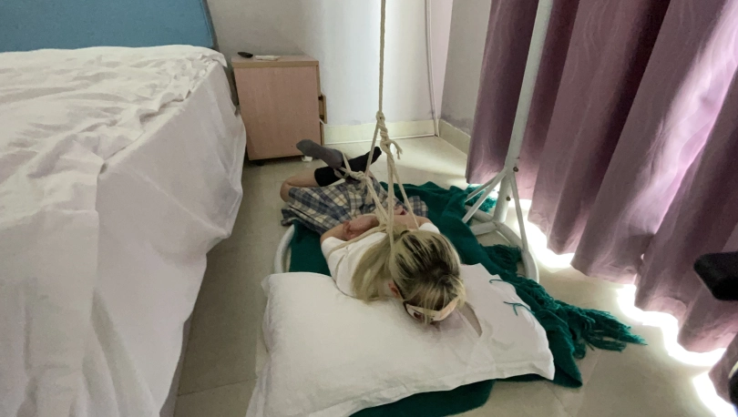 有手铐也有脚铐,最后还有一段捆绑放放置噢