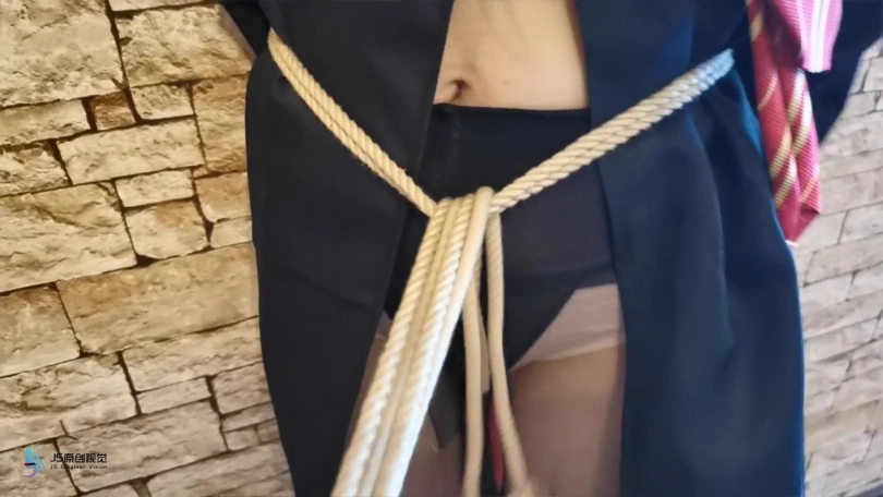 开始加固束缚,绳子在臀部缠绕绑上了股绳。