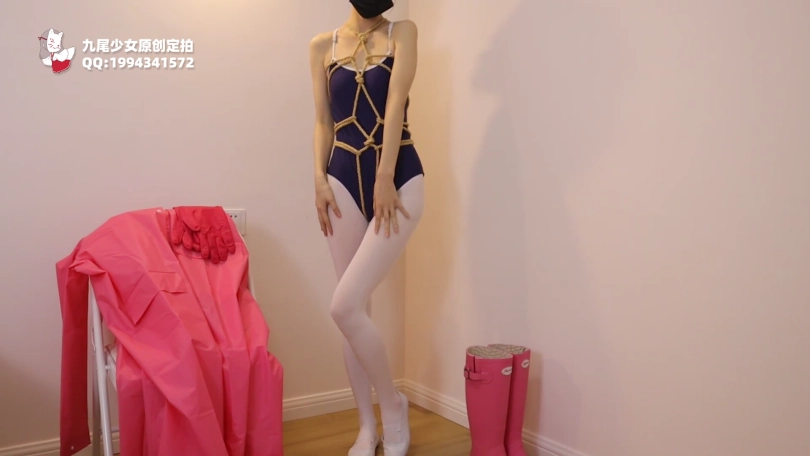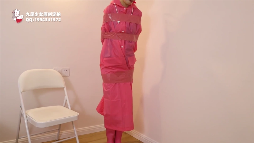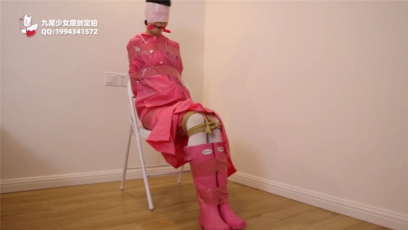 【九尾少女】白丝死库水雨衣胶带木乃伊,死库水龟甲缚捆绑,胶带木乃伊拘束挣扎