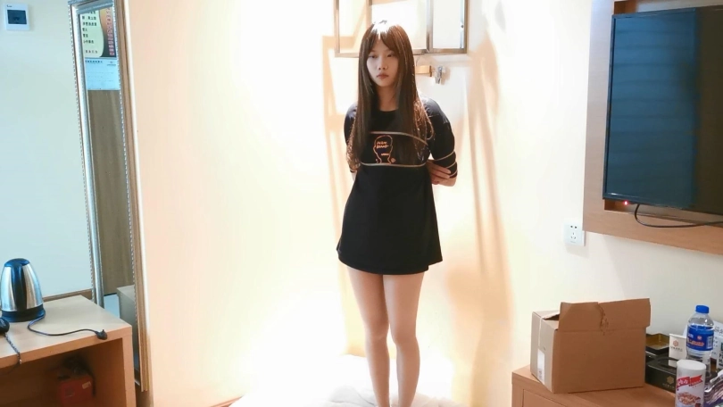 小学妹珂如,一年不见妹子还是看起来那么小。最近比较喜欢拍这个姿势,把妹子五花紧缚,双腿并拢绑好跪起来,背后用绳子吊着,胸前的绳子连接膝盖,跪的时间一长腿和脚就很快会麻,胸前的绳子和身后的绳子能限制起身和向前趴,珂如小学妹绑了一会腿就麻了,但是得等到放置时间才能松绑,于是就看着珂如的表情一点点变得生无可恋了。